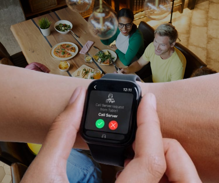 Real-time updates and guest preferences delivered to each server’s wrist or wearable device.